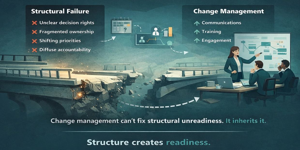 Industries vary. Execution models vary. Change frameworks vary. But the failure modes don’t.